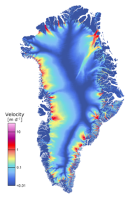- In the Sermeq Kujalleq (Jakobshavn) hydrological catchment from optical data.